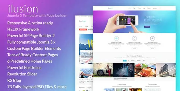 قالب شرکتی و حرفه ای جوملا ilusion یک محصول ایدال و کاربردی و فوق العاده بهینه است که مناسب راه اندازی انواع وب سایت های شرکتی، سایت آژانس تبلیغاتی، قالب آژانس های دیجیتال مارکتینگ، مجله خبری و تکنولوژی و ختی سایت های نمونه کار است که یک انتخاب عالی با سازگاری با افزونه های ارزشمند کی 2 و صفحه ساز پیشرفته جوملا میباشد و به قاطعیت میتوان گفت یکی از بهترین ها در قالب های جوملا به شمار می آید.